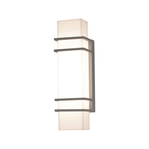 Contemporary LED outdoor sconce with die-cast aluminum housing. Durable powder coat finish. White acrylic diffuser.