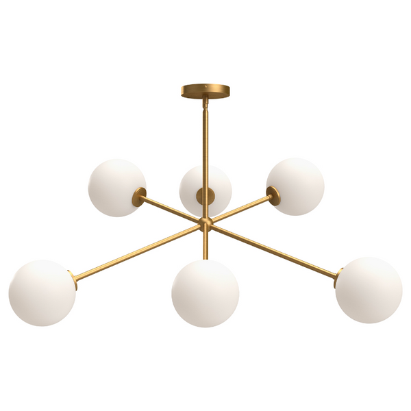 Mid-century shapes meet modern boho flair in the Cassia collection. With Sputnik-style shapes dancing with Opal Matte glass globes, this collection is two parts class, one part sass. Available in two finishes to match the mood of your space, Matte Black or Aged Gold.