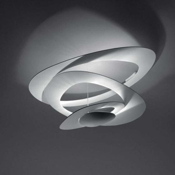 PIRCE Ceiling lamp in painted aluminium. Opening out of a slim disk are fluttering spirals, which fall gently downwards, creating magical effects of form and light.