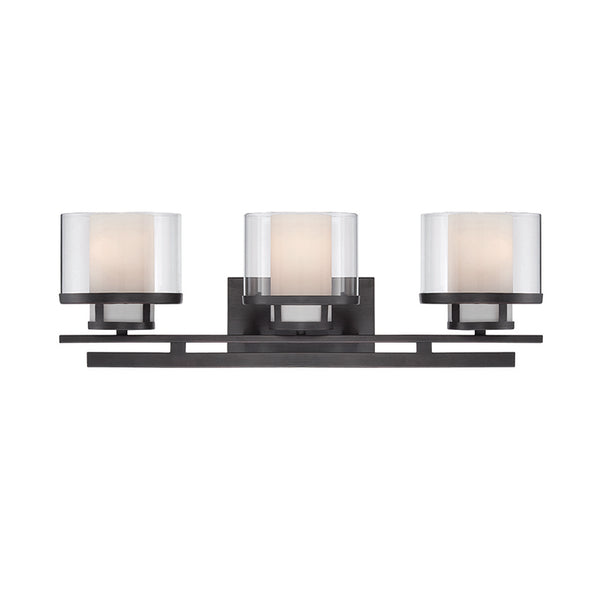 The Fusion collection utilizes straight lines intersecting with captured rings of layered glass to create a modern warm look.