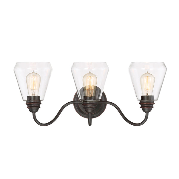 It's deep finish with worn highlights and clear glass shades effortlessly combine to offer timeless appeal in Foundry.