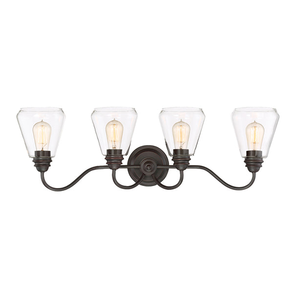 It's deep finish with worn highlights and clear glass shades effortlessly combine to offer timeless appeal in Foundry.