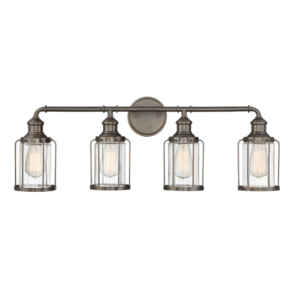 Combining the industrial look of hand fabricated metal work with the softness of its clear closed rounded glass and rich Satin Copper Bronze finish. Anson exemplifies clean and refined industrial design. Made from durable steel for long-lasting style in your home.