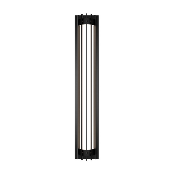 Crisp lines define this sophisticated wall light. Light shines through its banded diffuser creating a commanding presence on exteriors.