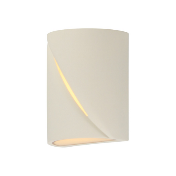 Softly rounding forms are constructed of outdoor-rated concrete molds. Finished in Greystone or Chalky White, these sconces are both playful and sophisticated. A diagonal reveal along the fixture's body emits light while also casting light above and below the fixture.