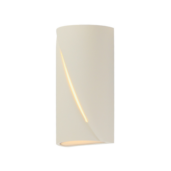 Softly rounding forms are constructed of outdoor-rated concrete molds. Finished in Greystone or Chalky White, these sconces are both playful and sophisticated. A diagonal reveal along the fixture's body emits light while also casting light above and below the fixture.