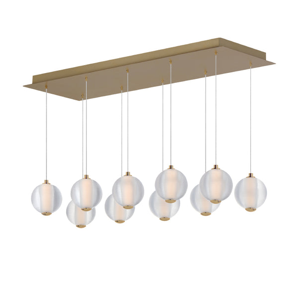 Ablaze with omnidirectional LED light radiating from the center of perfectly ribbed spheres, the lustrous glow within accentuates the repeating pattern on the glass' exterior. With minimal hardware visible outside the glass, select from Polished Chrome or Gold to match your interior's decor.