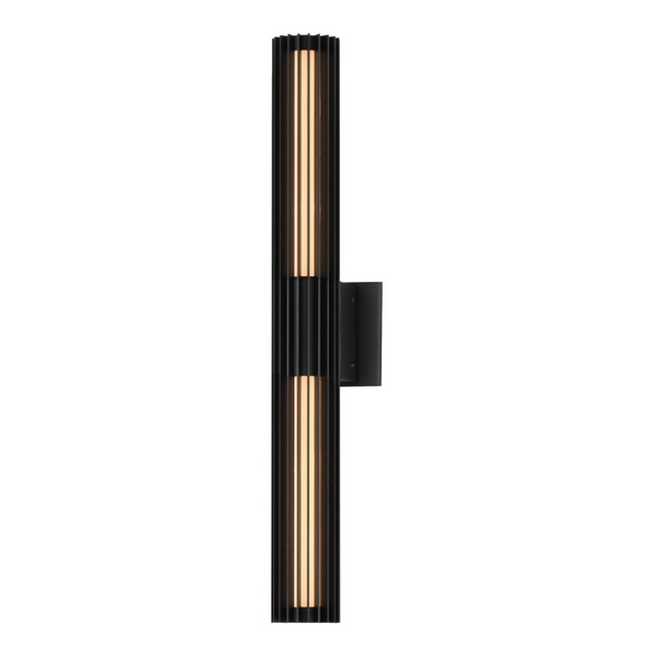 Vertical aluminum strands surround an acrylic LED tube that shines omnidirectional light filtered by the frame. Available in a variety of sconce sizes, the design is finished in a matte Black finish that complements most settings.
