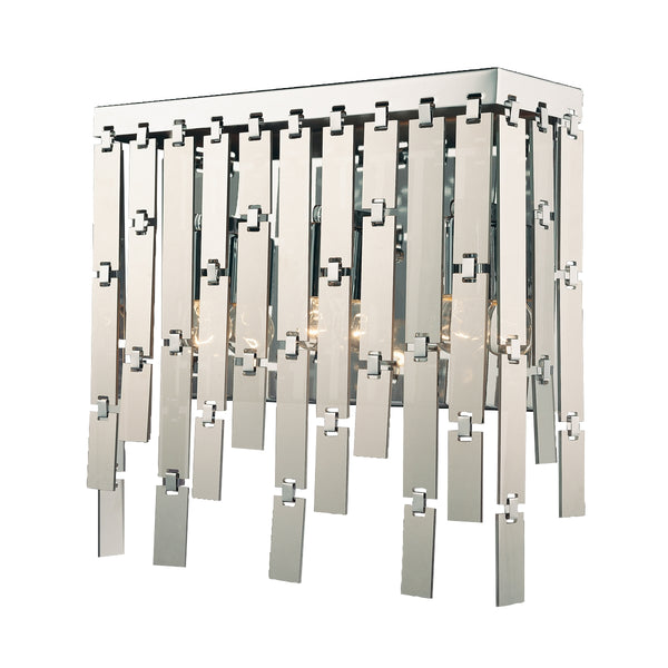 Interlocking bands of matte silver bring a heightened sense of modernity to this family. Technically sound and aesthetically pleasing, the continuous and staggered links of silver are spaced evenly to allow the interior light to emanate. The rectangular shape of the design complements the links with a broader perspective. These are contemporary, cutting-edge fixtures that effortlessly retain Eurofase's classic techniques in their solid design.