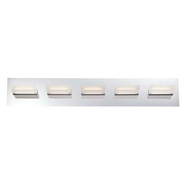 Frosted acrylic diffusers horizontally seated on a metal frame.