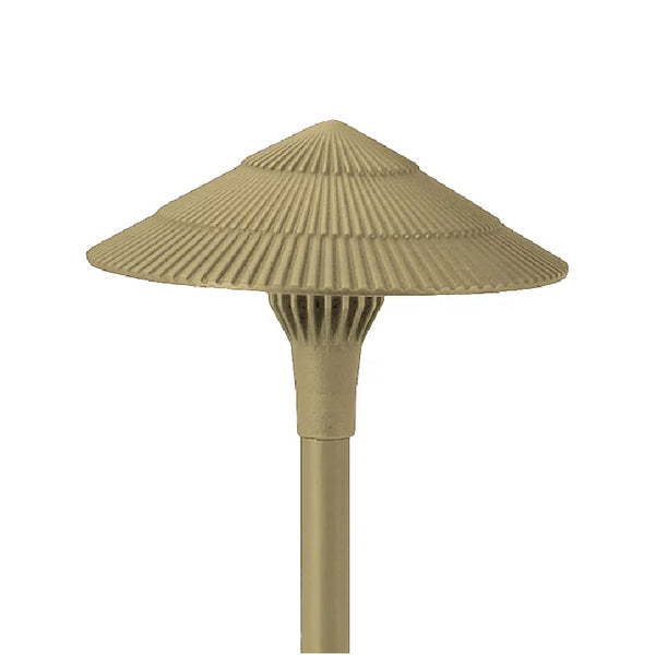 - Construction: Cast aluminum or cast brass Tiki Hat; matching extruded aluminum or brass stanchion with fixed LED heat sink hub