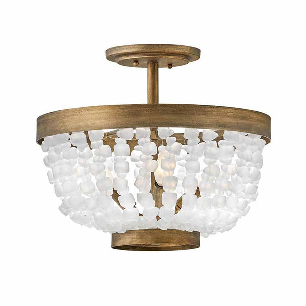 Dune's bohemian chic design showcases strands of soft white sea glass combined with a Burnished Gold finish. The designs blend a sophisticated silhouette with organic elements inspired by sun and surf. Dune infuses any space with a timeless, mesmerizing elegance.