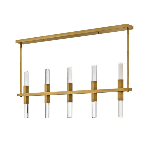 Cecily redefines modern glam with bold design elements that emanate a lux attitude. Dramatic and substantial faceted crystal rods, illuminated by an LED light source, pair perfectly with the chic Heritage Brass finish to create a breathtaking silhouette.