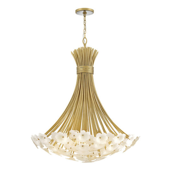 Decadently arranged in glamorous clusters, Marianne’s wispy-patterned white glass and ceramic blossoms create an elegant organic silhouette enhanced by a luxurious glow.