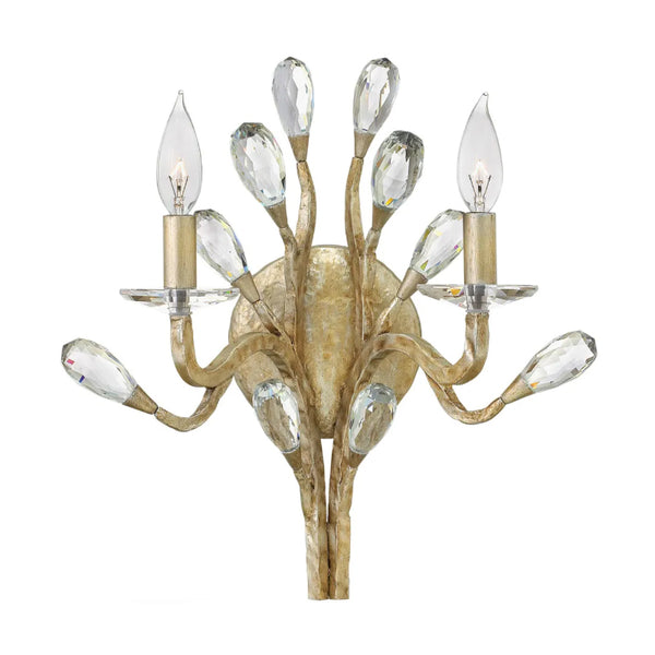 Eve’s graceful, hand-forged tubing creates a natural, vine-like pattern in a hammered Champagne Gold finish while faceted clear crystal “buds” emanate from the tips.