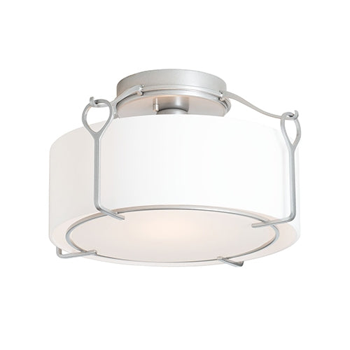 The versatile Bow Medium Semi-Flush features simple lines, suited to multiple settings and design styles. Classic hook and loop details suspend a glass shade, available in 2 glass options, while a lightly curved bottom glass diffuser disperses the light.