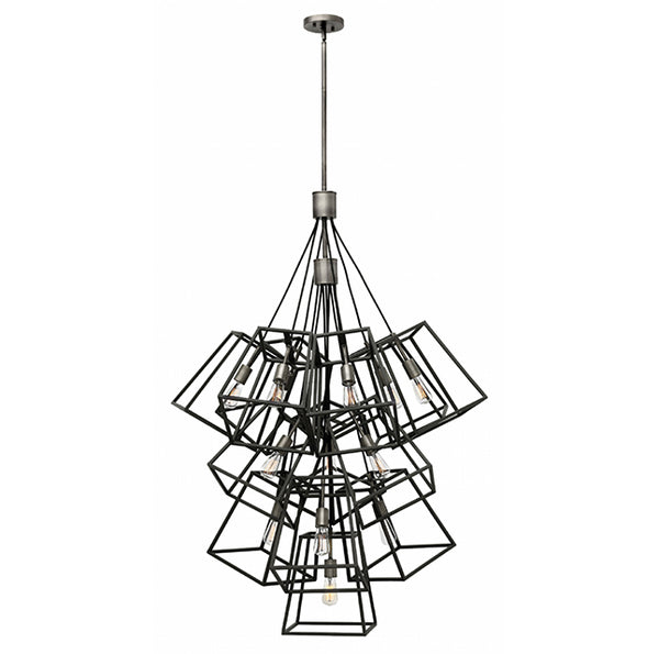 Fulton’s minimalist beauty emphasizes ‘less is more’ with vintage industrial style. This clean, airy tapered cage design is constructed without glass and the unique square candle sleeves rest on a discreet “H”-shaped cluster.