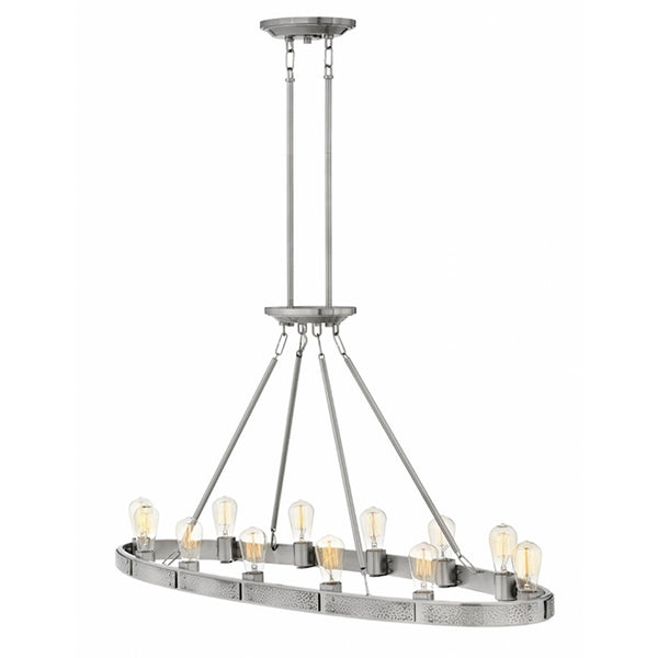 The striking hammered plates are a distinctive focal point in Everett’s design. Amplifying its unique look is the rich two-tone finish, imparting a refined elegance to this modern yet rustic chandelier. The use of vintage bulbs is recommended.
