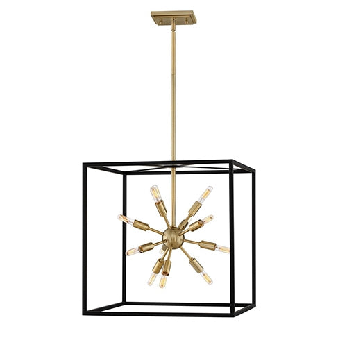 Some views are better than others. The striking Aros pendant showcases a provocative mid-century modern starburst cluster in a luxurious Warm Brass finish framed by an articulating, angular cage in prominent Black. For added drama, the sophisticated multi-tiered pendants dazzle with dimension to fill unique spaces or higher ceilings. Aros is part of the Lisa McDennon Collection.