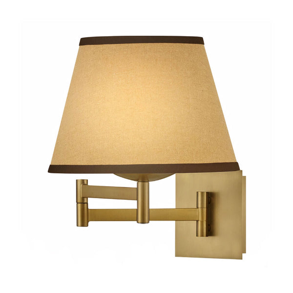 A take on traditional sconce styles, Sonia’s tapered shades feature contrasting top and bottom binding.