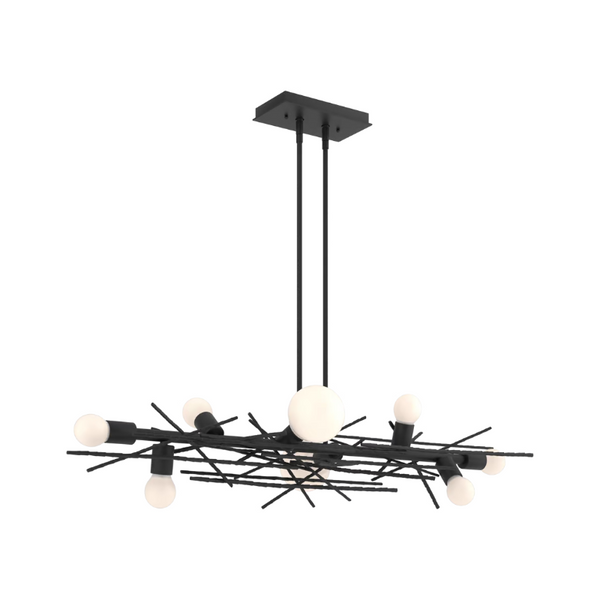 Metal branches and “twigs” serve as key elements of the Brindille 8-Light Linear Pendant. The bark-like texture is the result of our artisan’s use of a hammer known as “Big Blue” in our Vermont forge. David Kitts, who designed this fixture, intended to “take our classic hammered Brindille elements and bring them into a more contemporary setting form, scale and light source” with this stunning pendant.