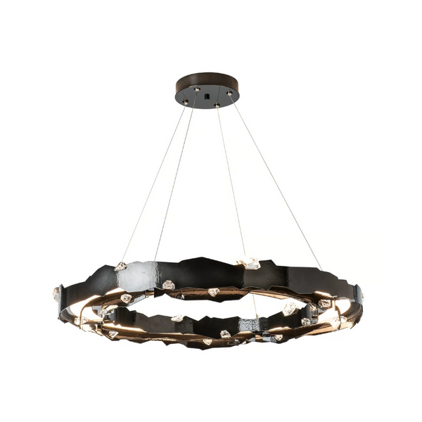 Design Team Leader Paul Marr Hilliard wanted to make a clear difference in the way crystals are used with the Trove LED Circular Pendant. “This is about geodes and the way the earth is broken open. This crystal shape is very raw and natural.
