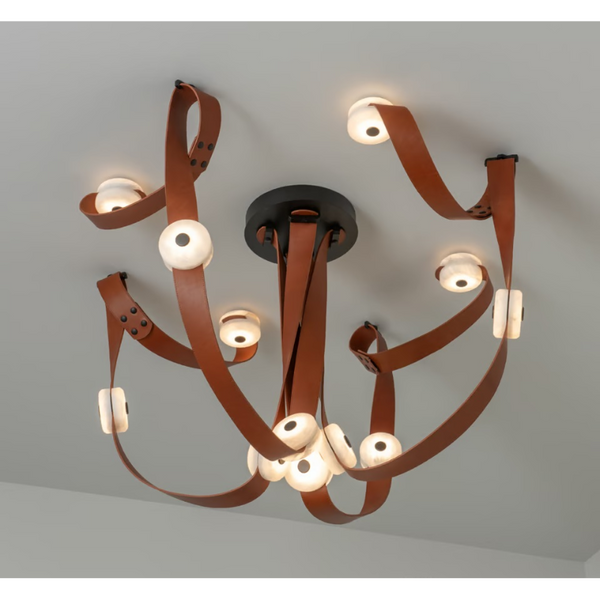 Unleashed. Imagine the limitless design possibilities with the SNAPS Large LED Pendant elements: 12 alabaster/LEDs plus 4 long and 4 shorter fine leather straps. Mixed materials—alabaster stone, high-quality leather, metal fittings—combine with LED technology used in an exciting, innovative way, create the groundbreaking, new lighting system "SNAPS", designed by HF's Andy Morter. Part of the ART + ALCHEMY by Hubbardton Forge Collection.
