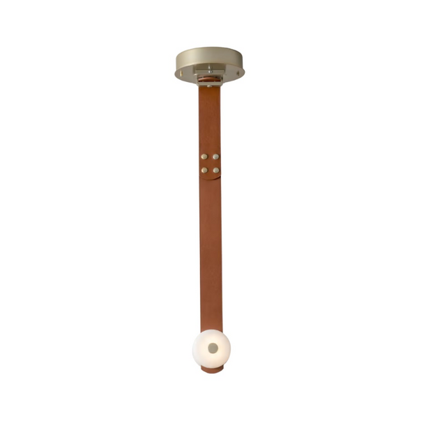 The SNAPS Small LED Pendant designed by HF's Andy Morter features a single alabaster stone-LED element on a long strap, with an additional, shorter fine-grain leather extension strap. An integrated "mini mount" allows a remote driver installation for a minimal wall mount appearance. Part of the ART + ALCHEMY by Hubbardton Forge Collection.
