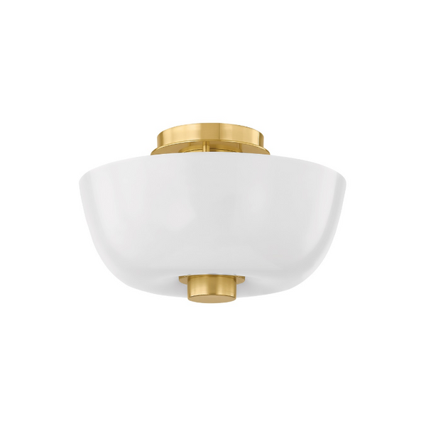 An organic beauty inspired by nature, the bubble-like silhouette of Dove glows from within. This sophisticated flush mount features an outer layer of unetched cloud glass over an inner cylinder of opal shiny glass. Accented with Aged Brass metalwork, Dove adds an artful quality to living and dining spaces.