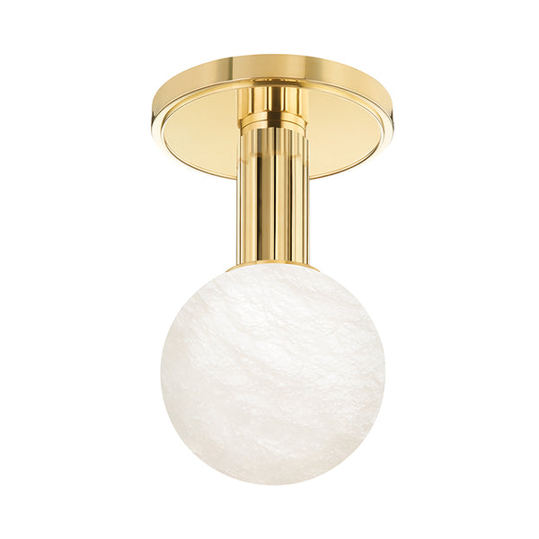 Murray Hill is simple design, elevated. Gorgeous, thick metalwork supports smooth, stunning alabaster globe shades. Hang the 2-light sconce vertically on each side of a mirror or horizontally above it or place the 1-light sconce on each side of a mirror to take the bath to the next level. The fabulous semi-flush will add glam and glow to any ceiling in the home.