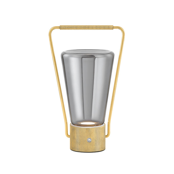 This petite portable is a moody everyday basic. A charming modern twist on a lantern design, Booker features a smoke glass shade and an Aged Brass frame. Its highly usable form is complemented by a tactile handle that invites you to grab and carry it with ease. Booker is perfectly sized for smaller spaces in need of a design pick-me-up.