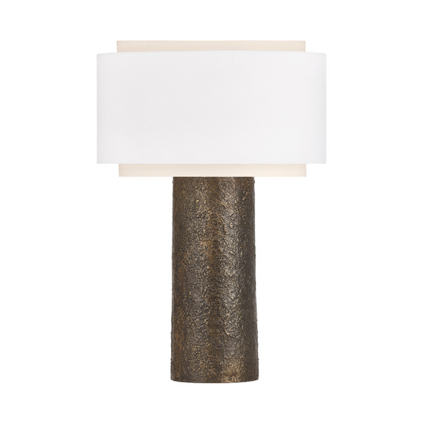 The Ashburton table lamp is a substantial statement piece for earthy interiors. Giving the base a grounded feel, the cast aluminum silhouette is marked by bronze patina highlights and surface imperfections recalling natural stone. A two-layer white linen shade adds an architectural element to complement the tactile base. A stunning addition to a side table or console, Ashburton’s quiet stature is enduring. *Due to the one-of-a-kind nature of the medium, exact colors and patterns may vary slightly from the image shown.