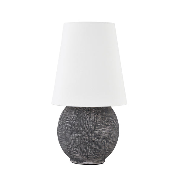 A celebration of unique proportions, Ulsterville features an oversized linen shade paired with a spherical ceramic base. While this dimmable lamp is petite, the textured finish gives it an artifact-like charm that makes it stand out as a focal point. Equipped with rechargeable LED lighting, Ulsterville is portable for versatile styling. The battery life is dependent on the brightness level set by the user, and it recharges in 3.5 hours.