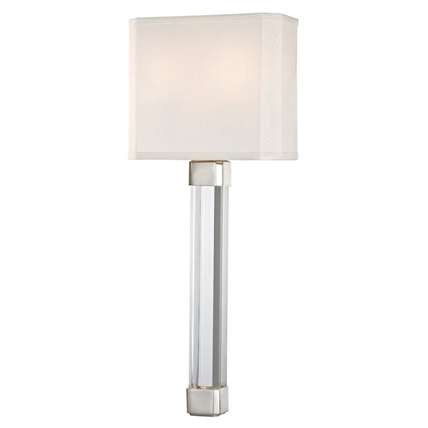 A long and thick arm of faceted crystal supports the shade-covered bulb in our Larissa family. The faceted crystal rod is fit snugly into metal pieces in the same shape at top and bottom.