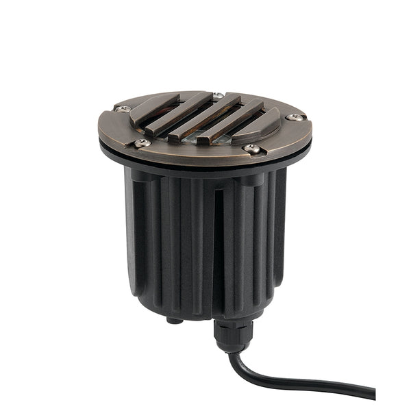 12V Brass Rock Guard In Ground with Lens in Centennial Brass