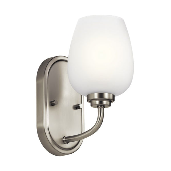 Inspired by the elegant and sleek design of a wine goblet, the 1-light wall sconce from the Valserrano collection conveys grace and beauty with its sweeping finish and Satin Etched glass. The Valserrano collection pairs traditional elements with a simple design to create a clean, classic look.