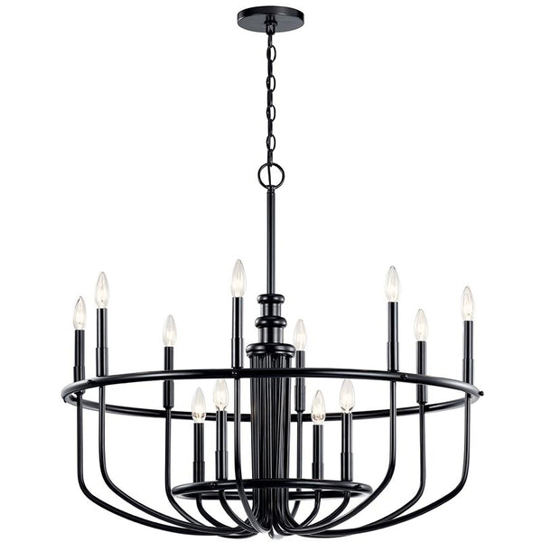 The Capitol Hill 30.75" 12 light chandelier features basket inspired curved arms that adds dimension and visual interest with these finishes.