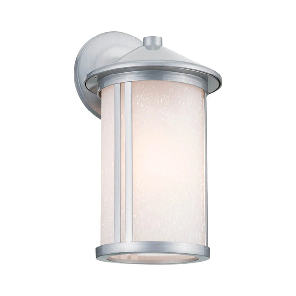 Sleek, double vertical lines and a refined Brushed Aluminum and Black finish complement a gorgeous Etched Seeded Glass shade to give you simple and clean lighting.