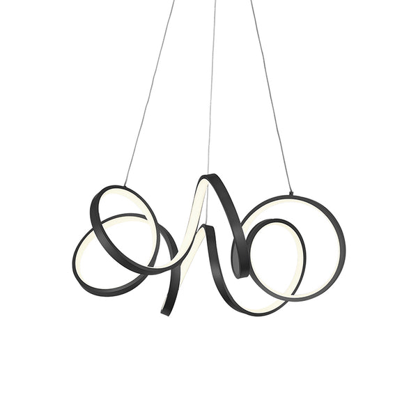A looping radiant line casts light across space in a continuous helical path. The Synergy series is characterized by the rolled rectangular extrusion, which emits soft light through the silicon opal lens. Configured in both linear and ring arrangements, the arcing aluminum allows the curated finishes to be visible at every angle.