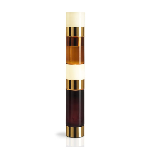 Stacking was designed by Rockwell Group in 2007 using the idea of modular, individually hand-blown glass cylinders in distinct combinations of colors and sizes