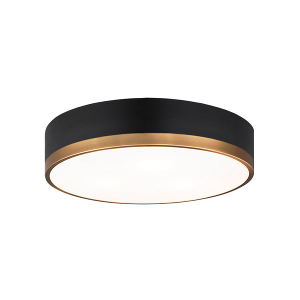Trydor is an ultra modern take on the traditional flush mount with a higher profile.This two-tone series features a thick Black or White band with a thin contrasting finish of either Chrome or Aged Gold Brass. A versatile fixture, suitable for any room.