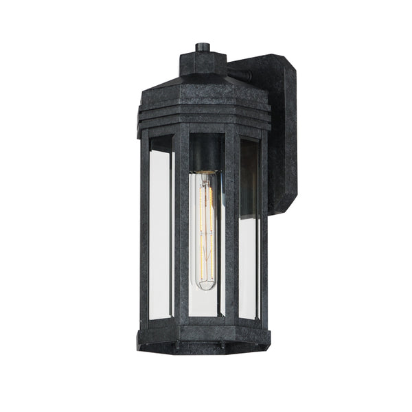 Inspired by the intricate geometric motifs of the iconic architect, the Wright collection of outdoor lighting features a hexagonal frame with tiered louvers along its hood.