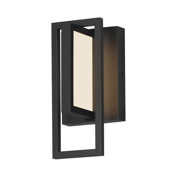The sleek, intersecting planes of the frame protect a central span of Frosted glass, softly illuminated by a concealed LED light source.