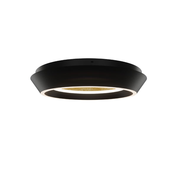 A slim strip of LED illumination casts a radiant glow, reflecting off the textured gold leaf interior of the Tinzel flush mount light.