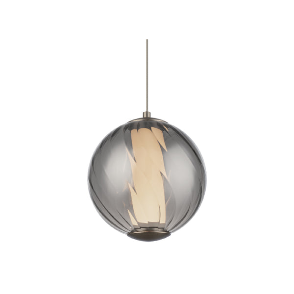 A glass globe adorned with dynamic swirling contours combines color temperature selectable LED light and high style in the luxe Swirly pendant.