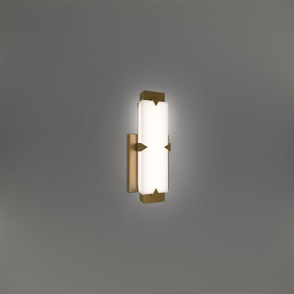 Modern Geometry. Rectilinear shapes intersect with triangles in the Carlisle wall sconce, creating a bold graphic frame that holds a color temperature selectable LED light bar. The sleek " silhouette casts a warm glow into the surrounding space.