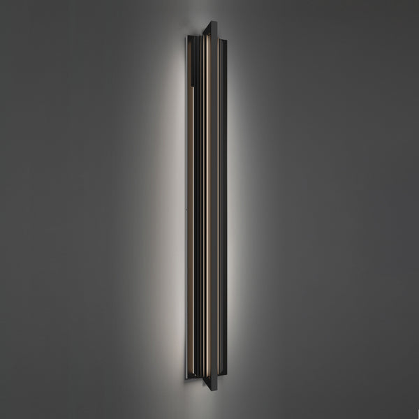 A striking study in contrasts, the Krimp outdoor wall sconce features an extruded metal frame with a ribbed front and a smooth back.