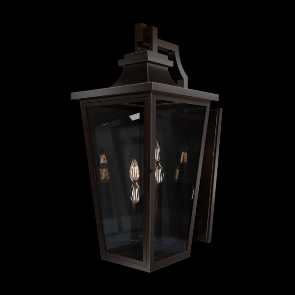 The Dannemore large wall lantern combines timeless elegance with modern sensibility. Its tapered metal frame is crowned with a curved, pyramid-like top, creating a refined silhouette. Clear glass panes encase candles casting radiant illumination across your outdoor space.