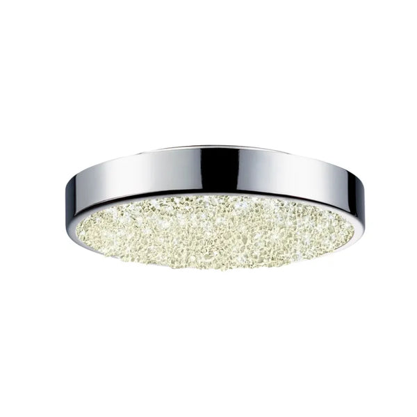 Glittering and alive, LED points of light refract through hundreds of crushed and fused glass nuggets that dance and shimmer in a spectacular display.