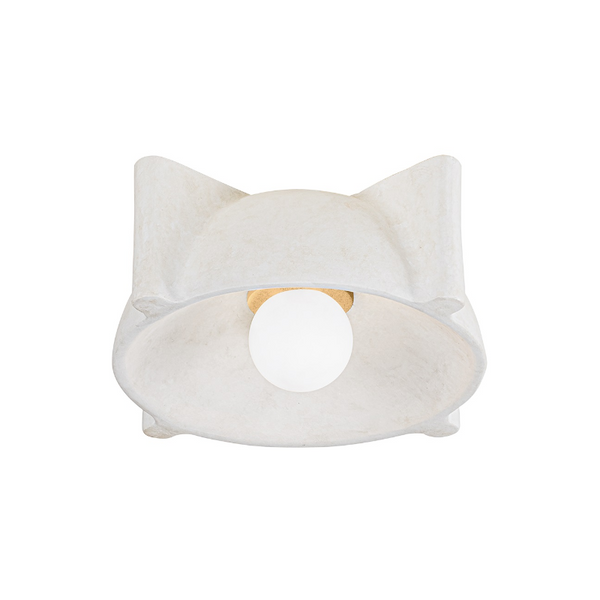 Inspired by nautical lighting, Modesto blends clean modern styling with warm, natural materials. A finned dome-shaped shade in Fossil White Ceramic finish gives the fixture a textured, weathered look. Minimal Vintage Gold Leaf hardware details add just a hint of shine. Available as both a wall sconce and flush mount.